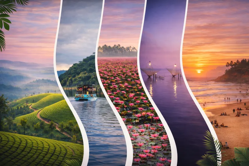 Munnar • Thekkady • Alleppey • Kumarakom • Varkala