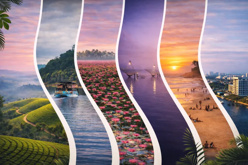 Athirappilly • Munnar • Thekkady • Alleppey • Kumarakom • Varkala