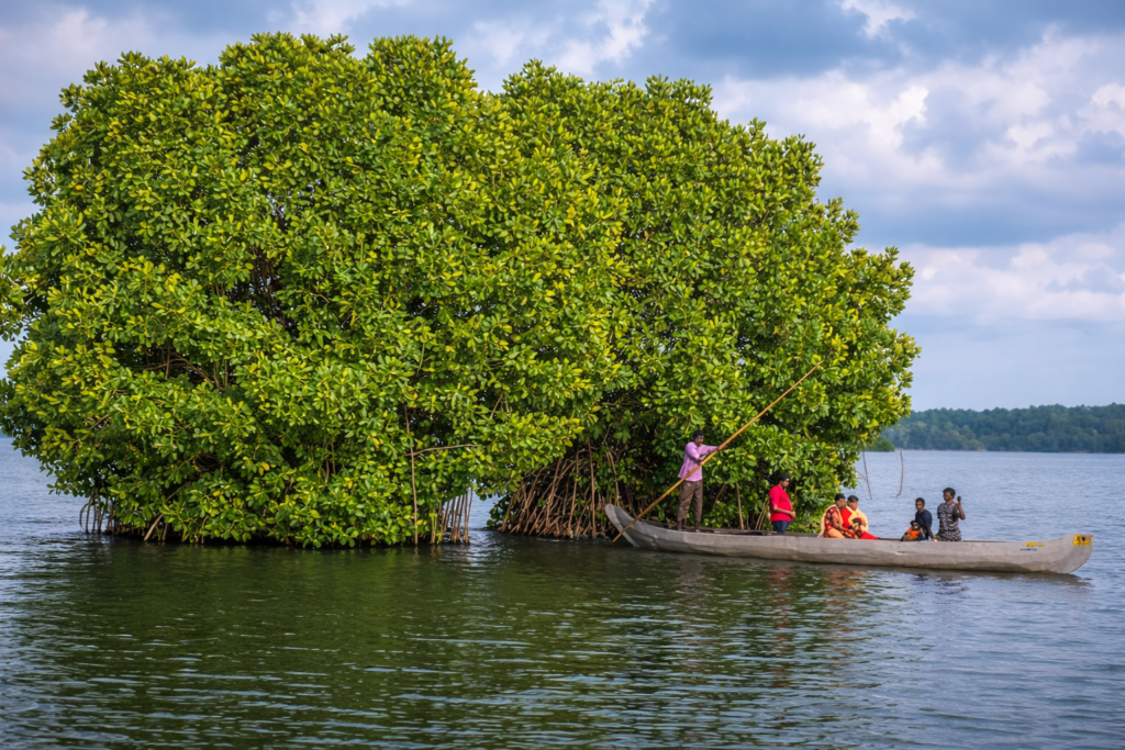 Munroe Island is a group of small islands located in the backwaters near Kollam. It is a very quiet place where you can see the real village life of Kerala. The best way to see the island is by taking a small wooden canoe through the narrow canals. You will pass under low bridges and see coconut trees leaning over the water. You can watch people making coir from coconut husks or catching fish. It is a very slow and peaceful experience. The sunset here is one of the most beautiful sights you will ever see in Kerala.