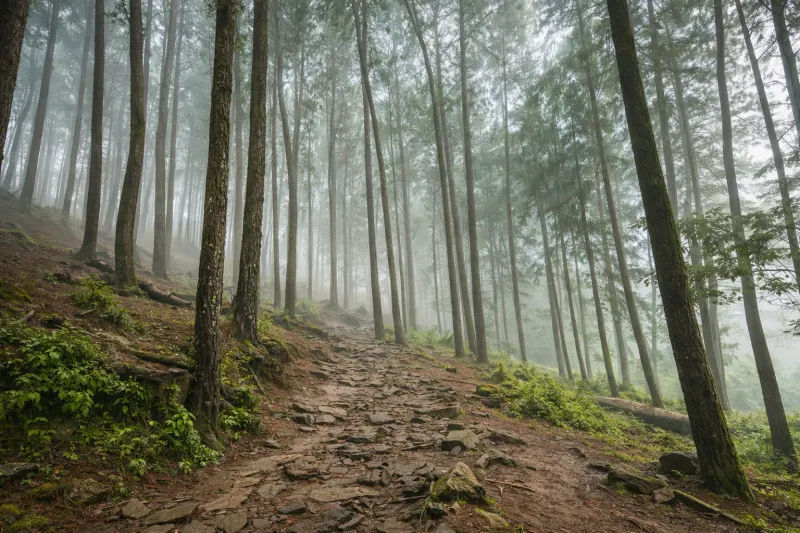 Walking through this pine forest feels slow and relaxing.
