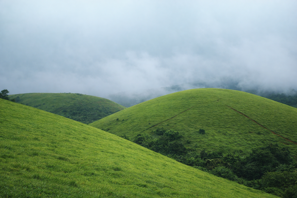 Vagamon Meadows is a large stretch of open grassland spread across rolling hills. The landscape feels endless, with soft slopes and clouds moving close to the ground during cooler hours.